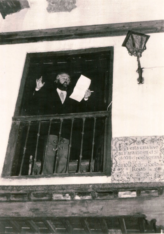 Soto de Rojas.- Juan de Loxa, en el balcón del Carmen de los Mascarones (Granada), "paraíso cerrado" del poeta Soto de Rojas. Abajo, azulejo diseñado por Hermenegildo Lanz (50 años después del homenaje de Lorca y sus amigos).